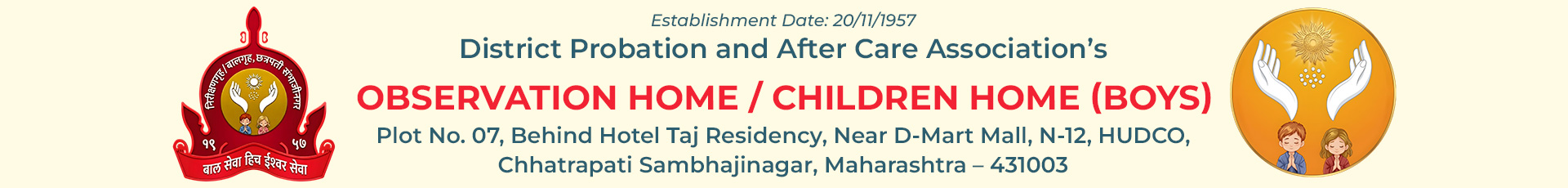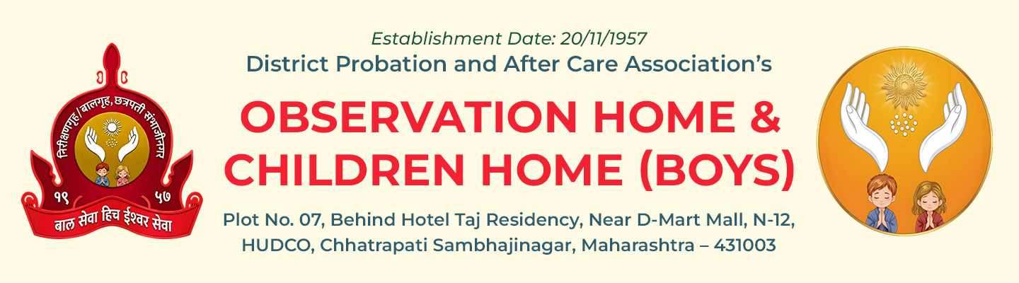 The Observation Home and Children Home (Boys), Chhatrapati Sambhajinagar, is a reputed social welfare institution established in 1957 by eminent freedom fighters and social reformers Late Vijayendraji Kabra, Cooperative Leader and Former MP Late Balasaheb Pawar, Freedom Fighter and Founder Secretary Late S. K. alias Hirubhau Jagtap, Freedom Fighter Late Pundalikrao Ranjangaonkar, and Late Gurubakshsinghji Chhabda.