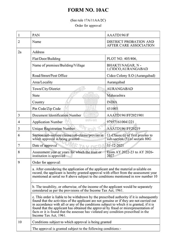 Account Name: Hon. Secretary, District Probation and After Care Association