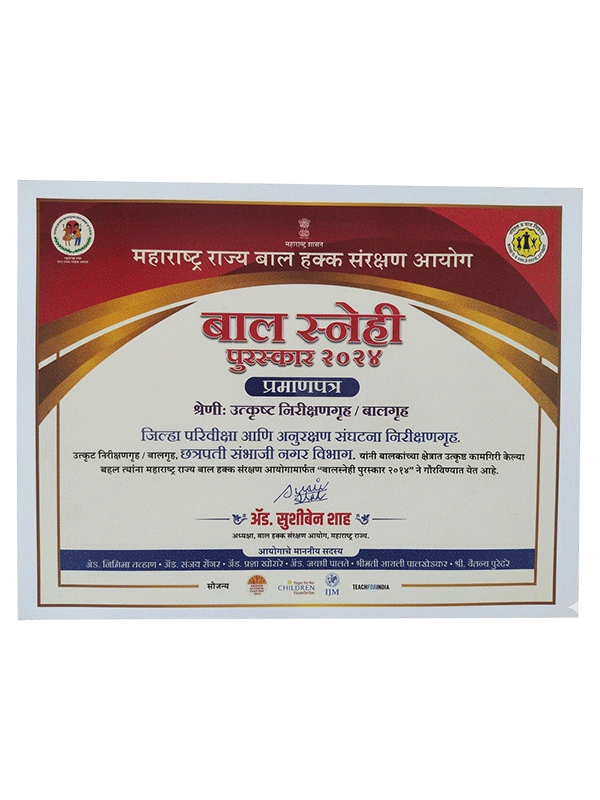 The institution is managed by the District Probation and After Care Association and is registered as a Public Charitable Trust under the Bombay Public Trust Act, 1950. It functions in close coordination with the Women and Child Development Department, Government of Maharashtra, and is duly registered and approved under the Juvenile Justice (Care and Protection of Children) Act, 2015, with official capacity to care for 50 children.